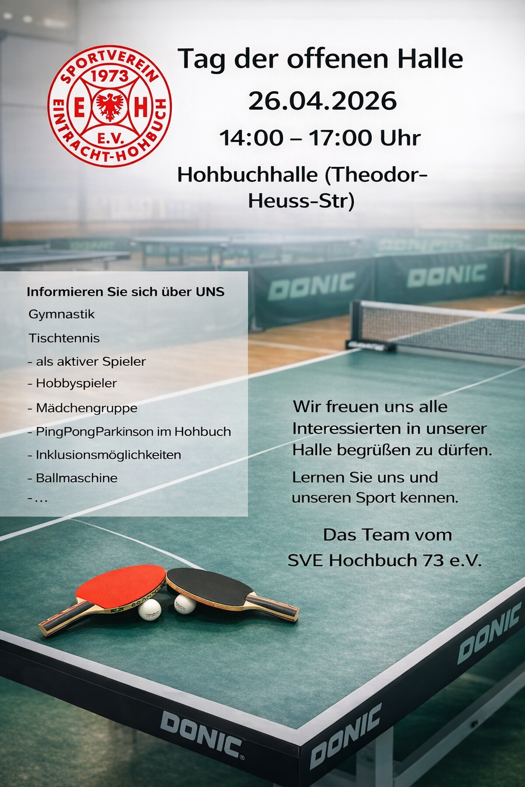 Wir öffnen wieder unsere Türen und zeigen euch von 14:00 Uhr bis 17:00Uhr, wer wir sind! Ganz herzlich eingeladen vorbeizuschauen sind alle Interessenten, Freunde und Familienangehörige. Aber auch, wenn sie nur mal eben schauen wolle, was wir so zu bieten haben, dürfen sie uns gern in unserer Halle begrüßen.